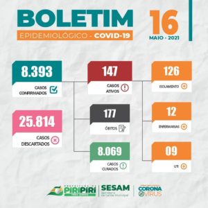 Boletim epidemiológico Covid-19 divulgado pela Sesam de Piripiri neste sábado (15) e domingo (16)