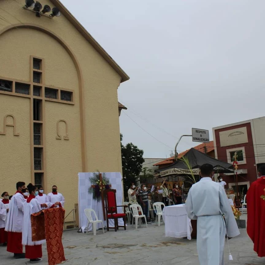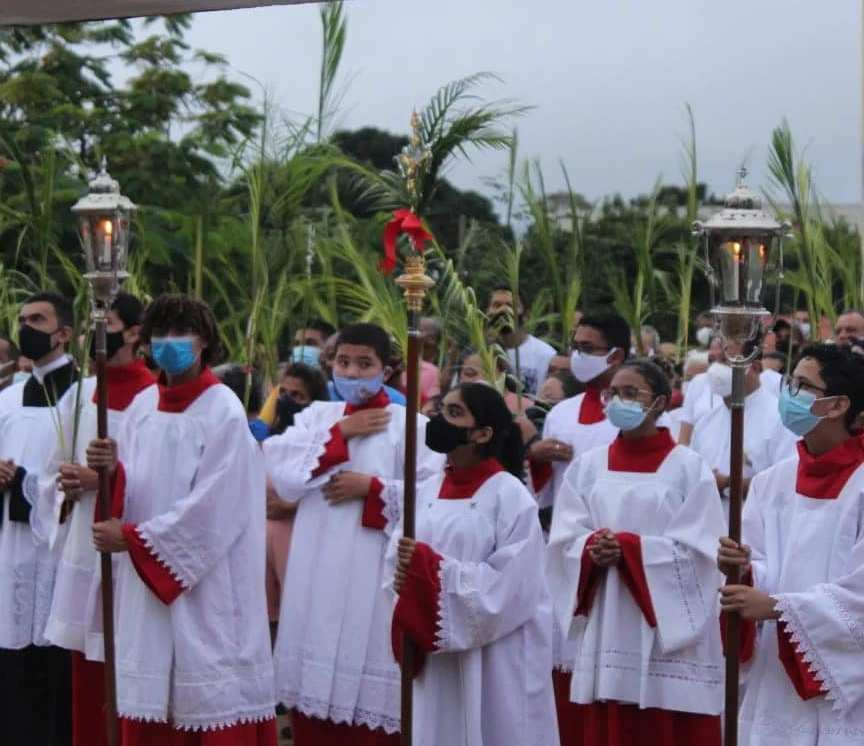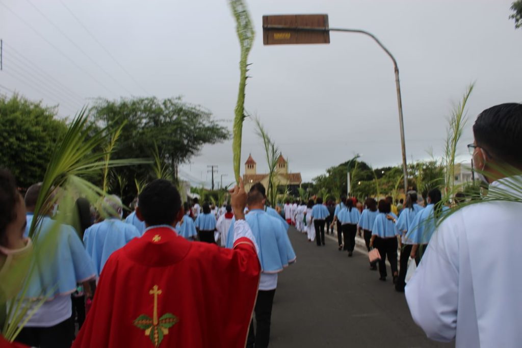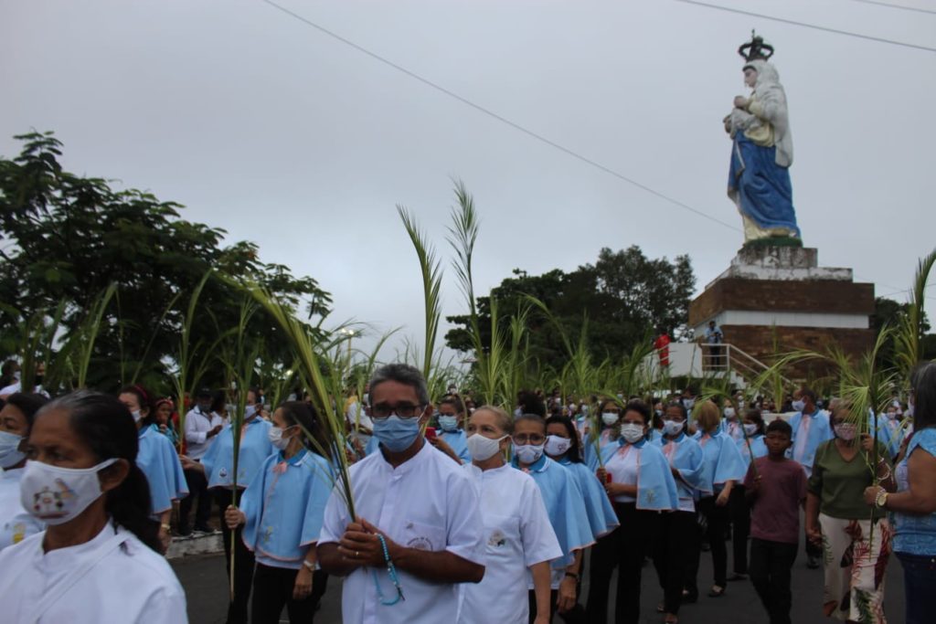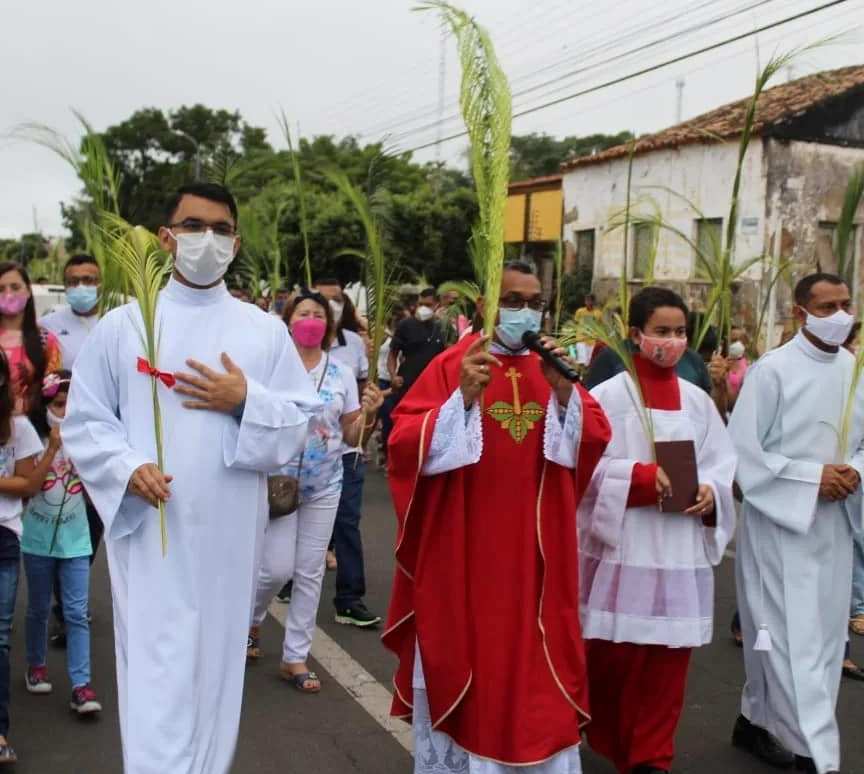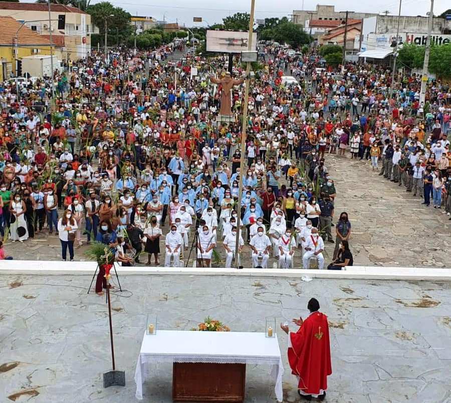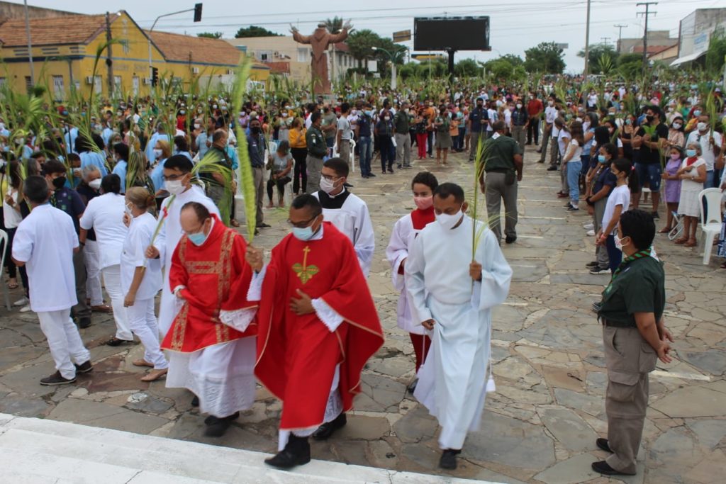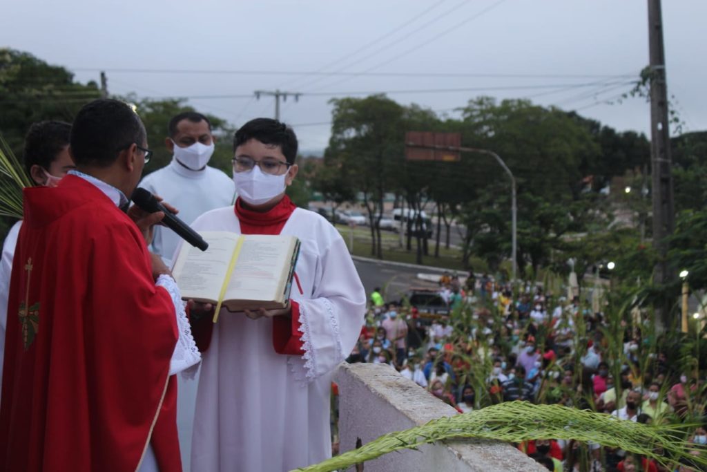 De lá, a multidão de fiéis percorreu as avenidas Dr. Pádua Mendes e Tomaz Rebêlo até chegar ao adro da igreja matriz onde foi celebrada a Missa de Ramos. “Nós queremos revelar o nosso amor à Igreja [Católica], ao nosso Senhor Jesus Cristo e à nossa fé. Se estamos aqui é porque temos fé. A nossa fé é maior e nos faz vencer o medo porque Jesus caminha conosco”, disse Frei Leandro se referindo à coragem das pessoas de manifestarem sua fé diante da pandemia.