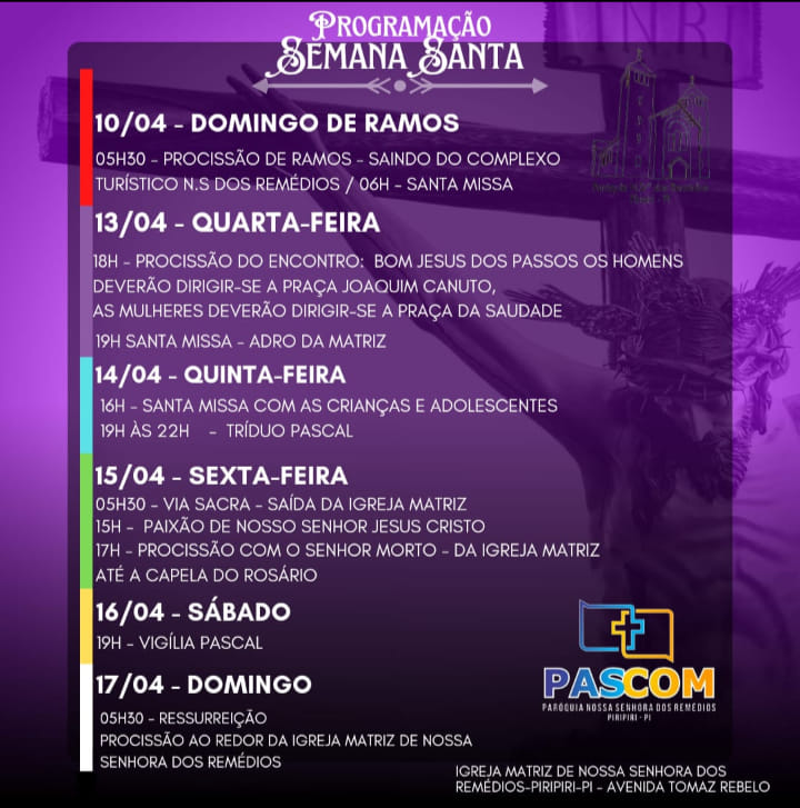 Centenas de fiéis participaram da procissão e da missa de Ramos na cidade de Piripiri, a 168 km ao Norte de Teresina, neste domingo (10/04), abrindo a programação da Paróquia de Nossa Senhora dos Remédios para a Semana Santa. Outras duas procissões e várias missas deverão acontecer até o Domingo de Páscoa, dia 17 de abril.
