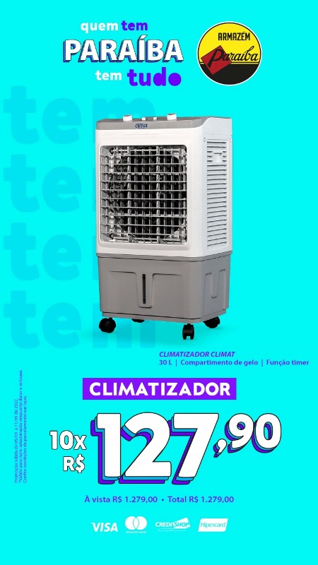 Sinta o clima e aproveite as ofertas em até 24x. Quem tem Paraíba tem tudo. Chega de calorão, é hora de se refrescar com as ofertas do Paraíba.