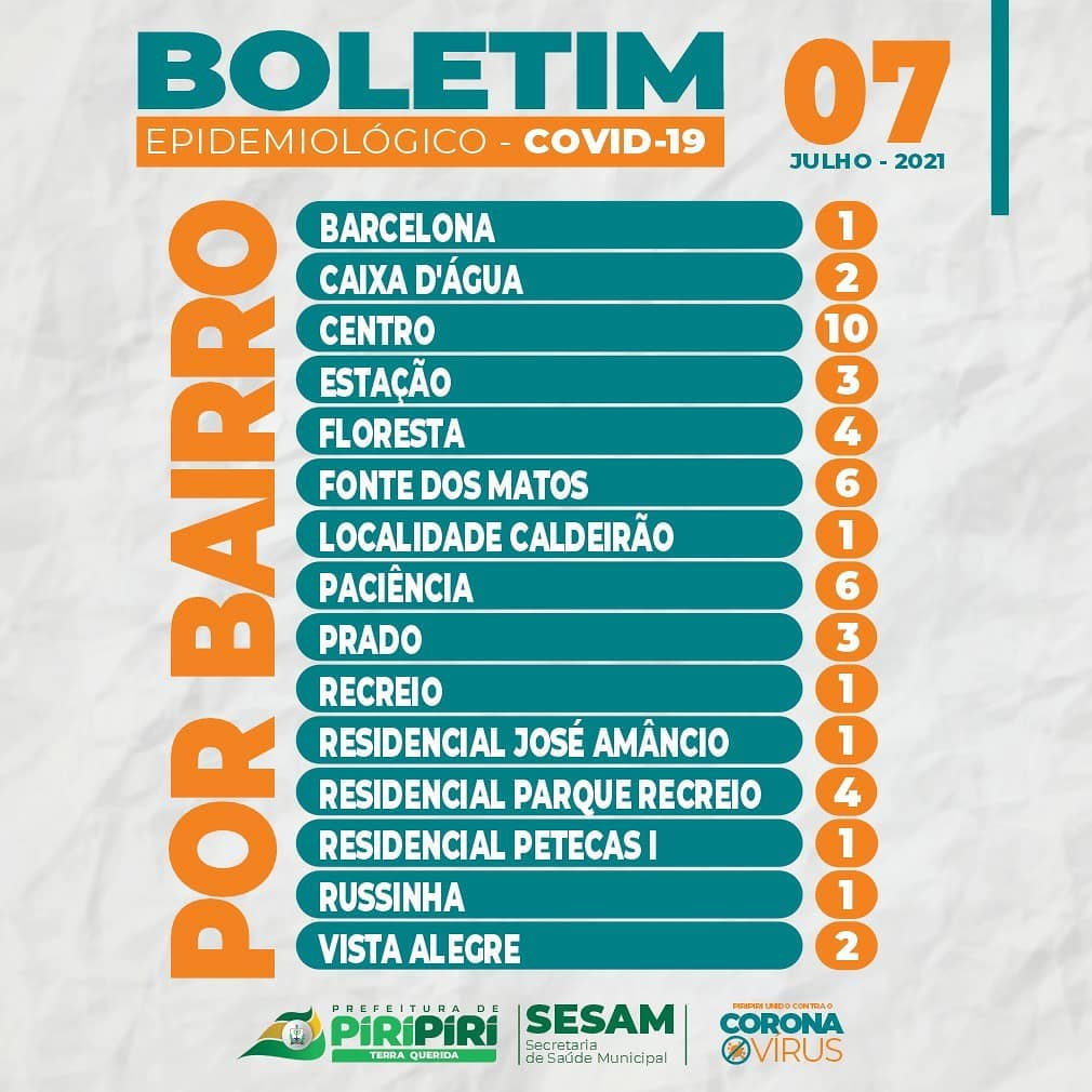 Confira o Boletim epidemiológico Covid-19 desta quarta-feira (07) divulgado pela Sesam de Piripiri
