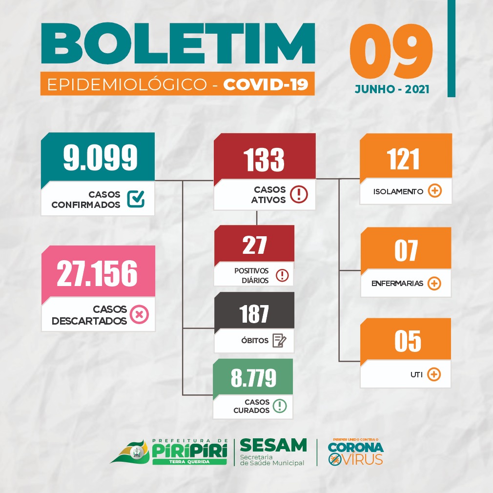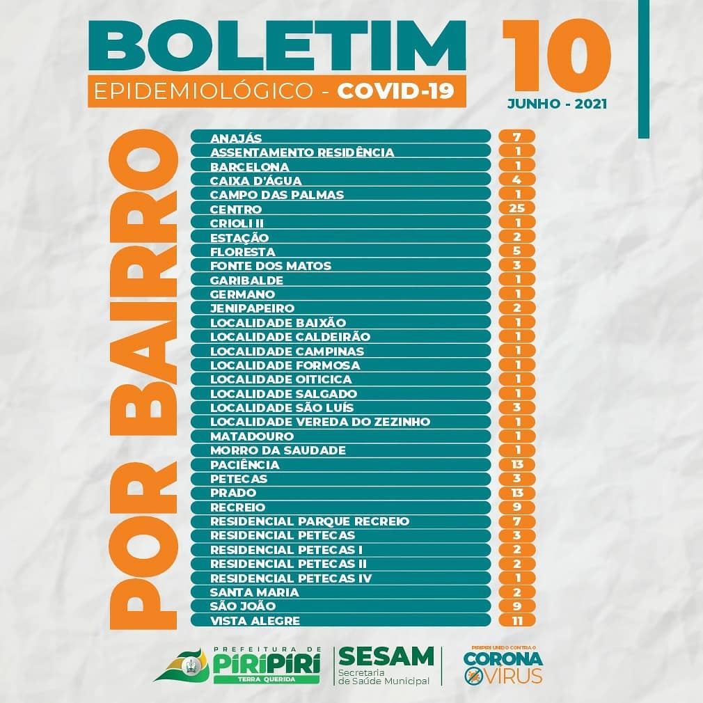 Confira os números da Covid-19 em Piripiri divulgados nos últimos boletins da Sesam
