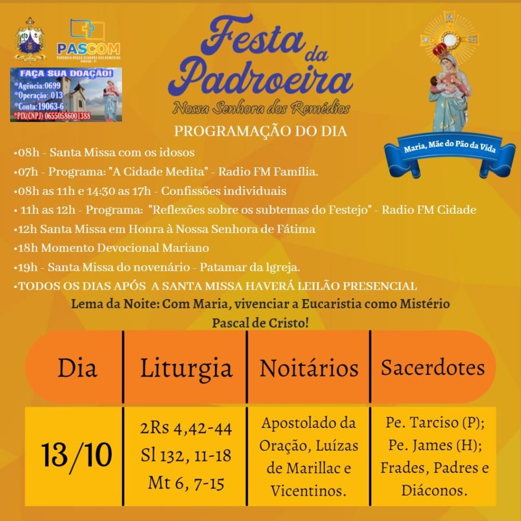 Aconteceu na noite desta terça-feira (12) a 6ª noite do novenário do Festejo da Padroeira de Piripiri, nossa Senhora dos Remédios que teve como celebrante o padre piripiriense Raimundo Nonato.