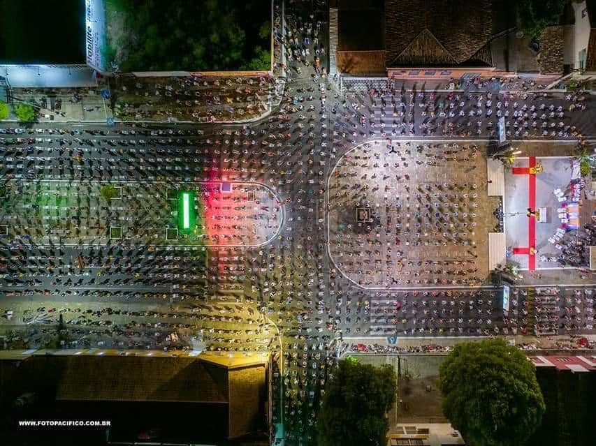 Imagem aérea do público durante a novena desta terça-feira (12) em registro do Photo Pacífico