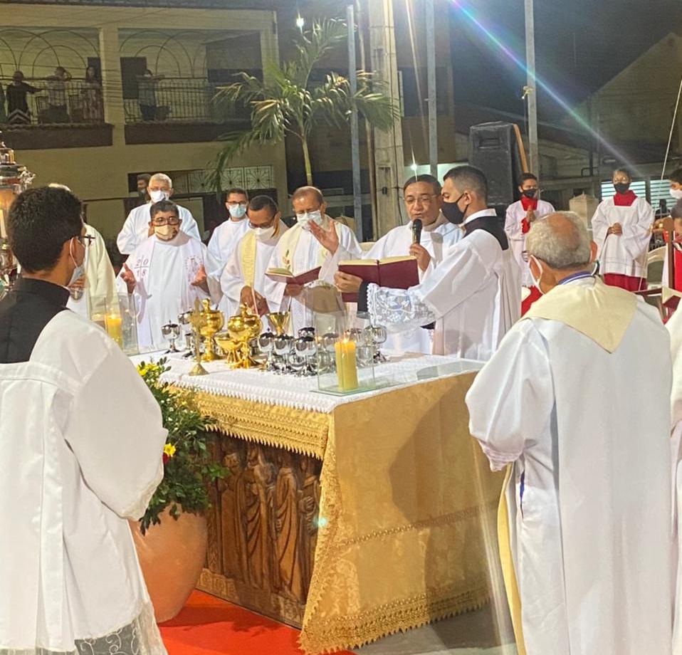 Frei Leandro condenou também algumas críticas que foram feitas contra o tempo de duração das missas. Confira imagens da noite desta terça-feira (12) feitas por David Brito;