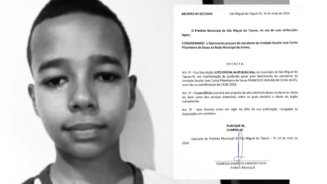Na manhã desta terça-feira (14/05), uma criança de 11 anos, identificada como Francisco Raylan da Silva Alves, faleceu após sofrer um mal súbito enquanto assistia aula na Unidade Escolar José Carlos Pitombeira de Sousa, no município de São Miguel do Tapuio.