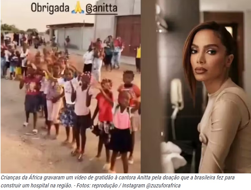 Com uma pequena doação de R$ 25 mil a cantora Anitta ajudou transformar a vida de crianças da África. Elas gravaram um vídeo para agradecer pelo dinheiro que está sendo usado para a construção de hospital na região de Bengo.