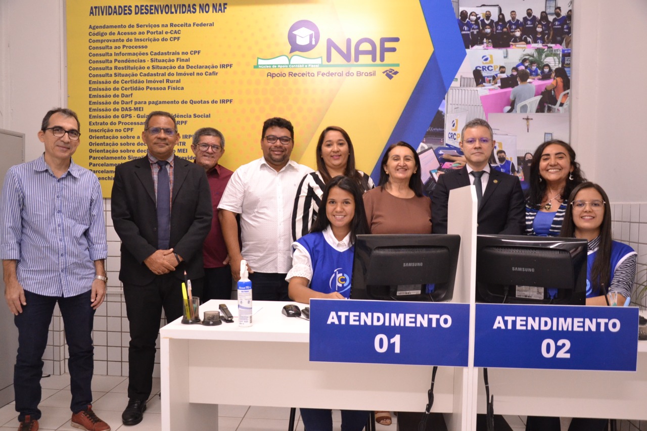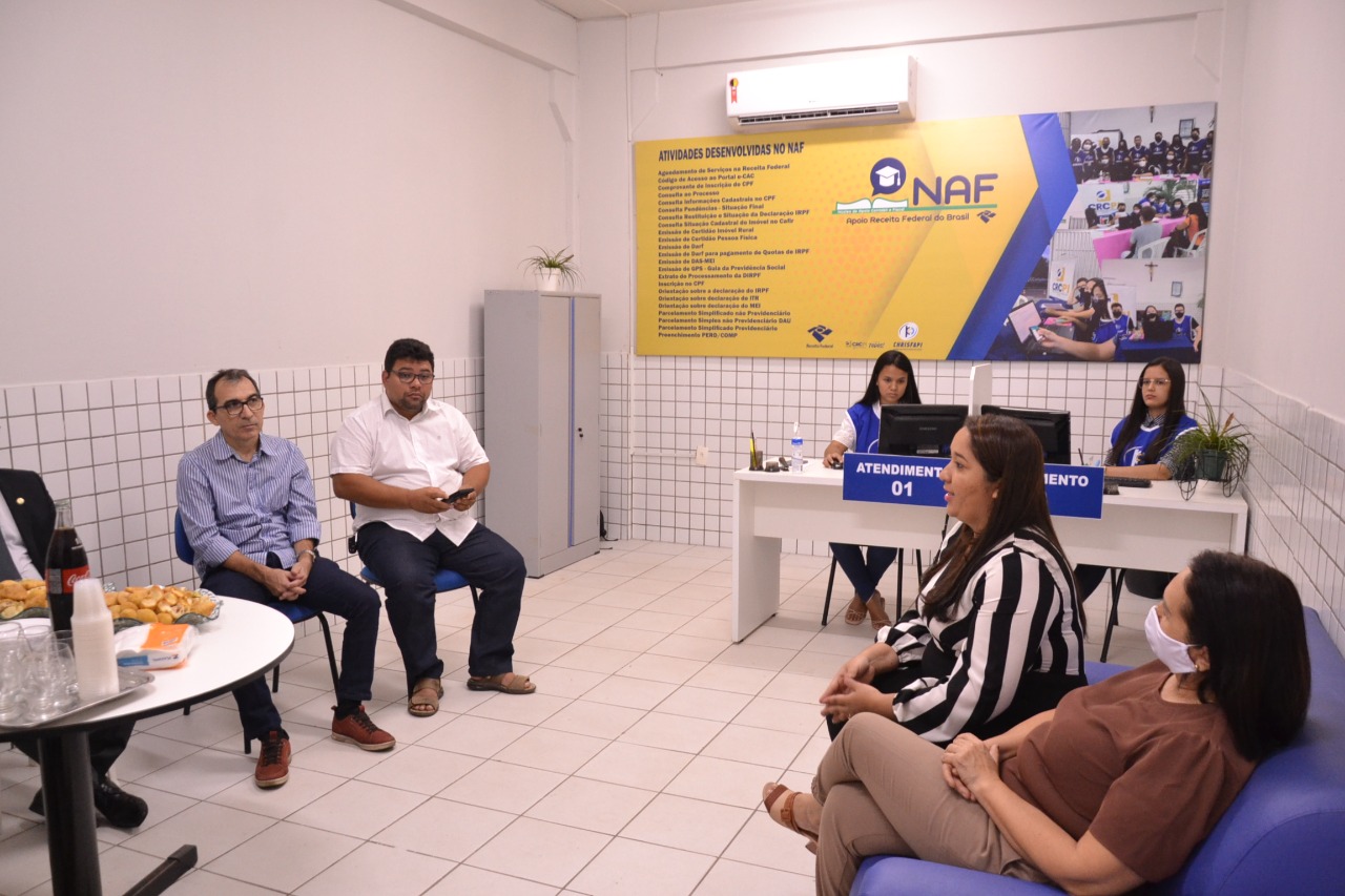 A Faculdade Chrisfapi recebeu André Luis da Silva Santos (delegado da Receita Federal), juntamente com sua equipe, Fábio Galvão, Maria Amélia Castro, Mauro Holanda e Fernando Oliveira para uma visita nas novas instalações do Núcleo de Apoio Contábil e Fiscal (NAF). A equipe foi recebida pela Profª. Dra. Maria do Carmo Brito (Diretora Geral da instituição), pela Profª. Ma.Tamires Carvalho (Coordenadora do curso de Ciências Contábeis), pelo prof. José Carvalho e as alunas Susy de Jesus e Nayra Sousa.