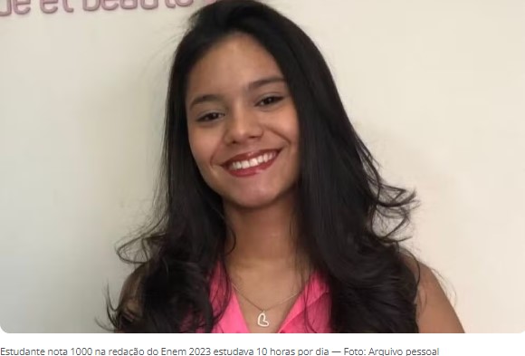 O resultado foi divulgado nesta terça-feira (16) pelo Ministério da Educação. Após o resultado, ao g1, a jovem contou que assistia a 5 horas de aulas por dia e, em casa, estudava mais 5 horas. Para ela, o tema “amplo” ajudou na conquista de uma boa nota.
