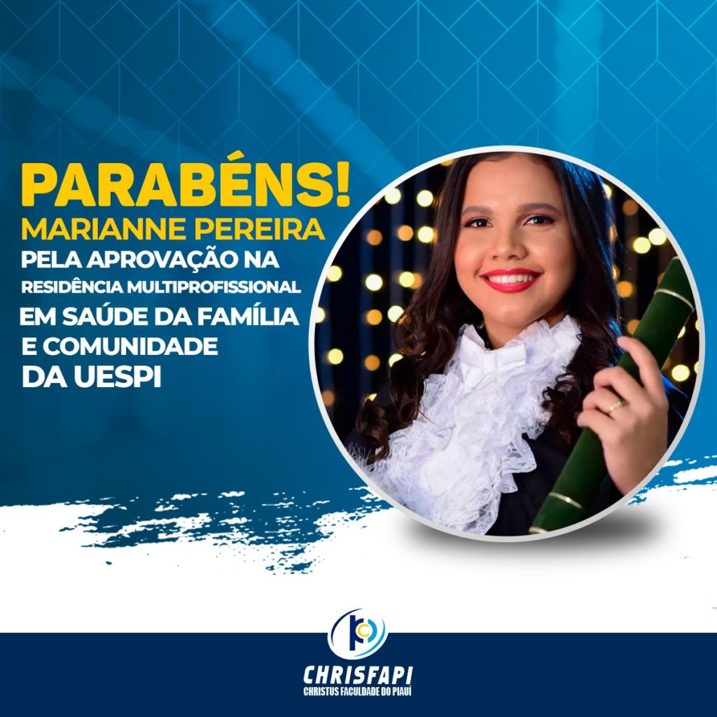 Faculdade Chrisfapi congratula a egressa de Serviço Social Marianne Pereira pela aprovação no Programa de Residência Multiprofissional em Saúde da Família e Comunidade na UESPI. Sabemos que chegar até demandou muito esforço e persistência, mas você se esforço muito e conseguiu.
