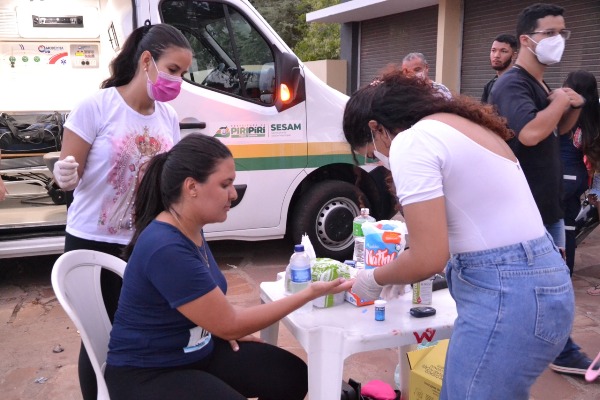 Durante a ação, foi ofertado diversos serviços de saúde para os presentes como: avaliação nutricional com os acadêmicos de nutrição, aferição de sinais vitais e verificação de glicemia com os alunos de enfermagem, além de alongamento, dança e academia de saúde com os alunos de educação física.