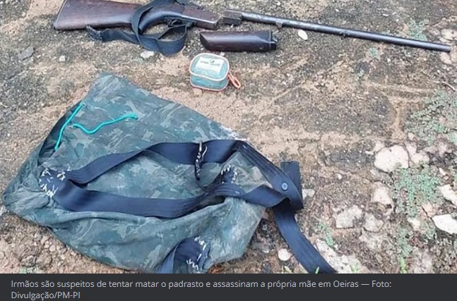 Os dois irmãos, identificados como Gilmar e Gilvan, foram presos na tarde desta sexta-feira (31) suspeitos de matar a própria mãe durante troca de tiros com o padrasto em Oeiras. Maria Vilani Nunes da Silva, de 60 anos, morreu baleada por um tiro de espingarda na quinta (30),