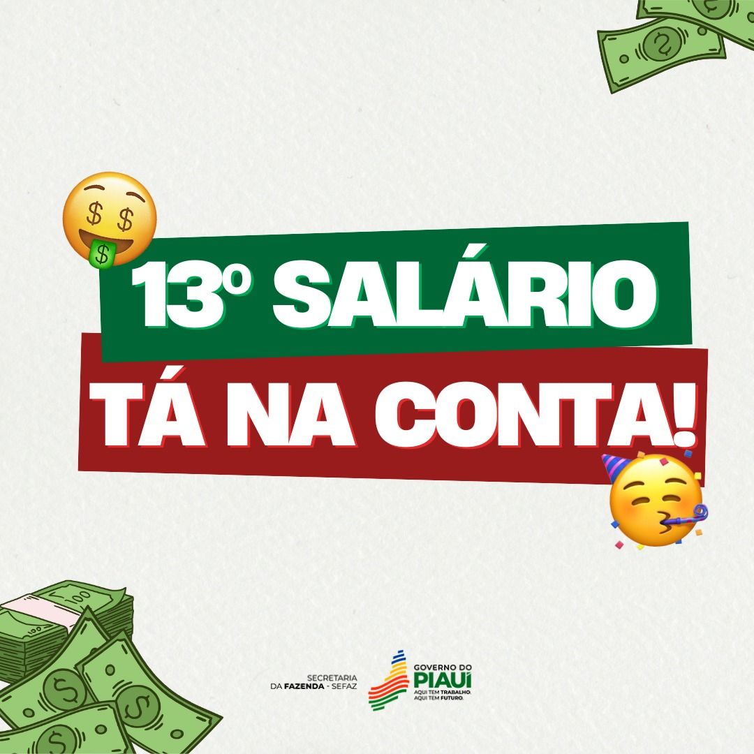 A Secretaria da Fazenda do Piauí (Sefaz) anuncia que o pagamento do 13º salário já está na conta dos servidores estaduais. Um total de R$ 289.750.479,98 líquidos foi injetado diretamente na economia do estado, impulsionando o comércio local e aquecendo as atividades econômicas no fim de ano.