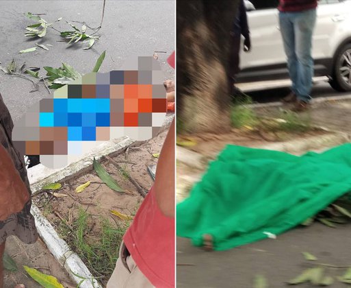 Profissionais do Serviço de Atendimento Móvel de Urgência (Samu) estiveram no local, constaram o óbito e cobriram o corpo com o pano verde.