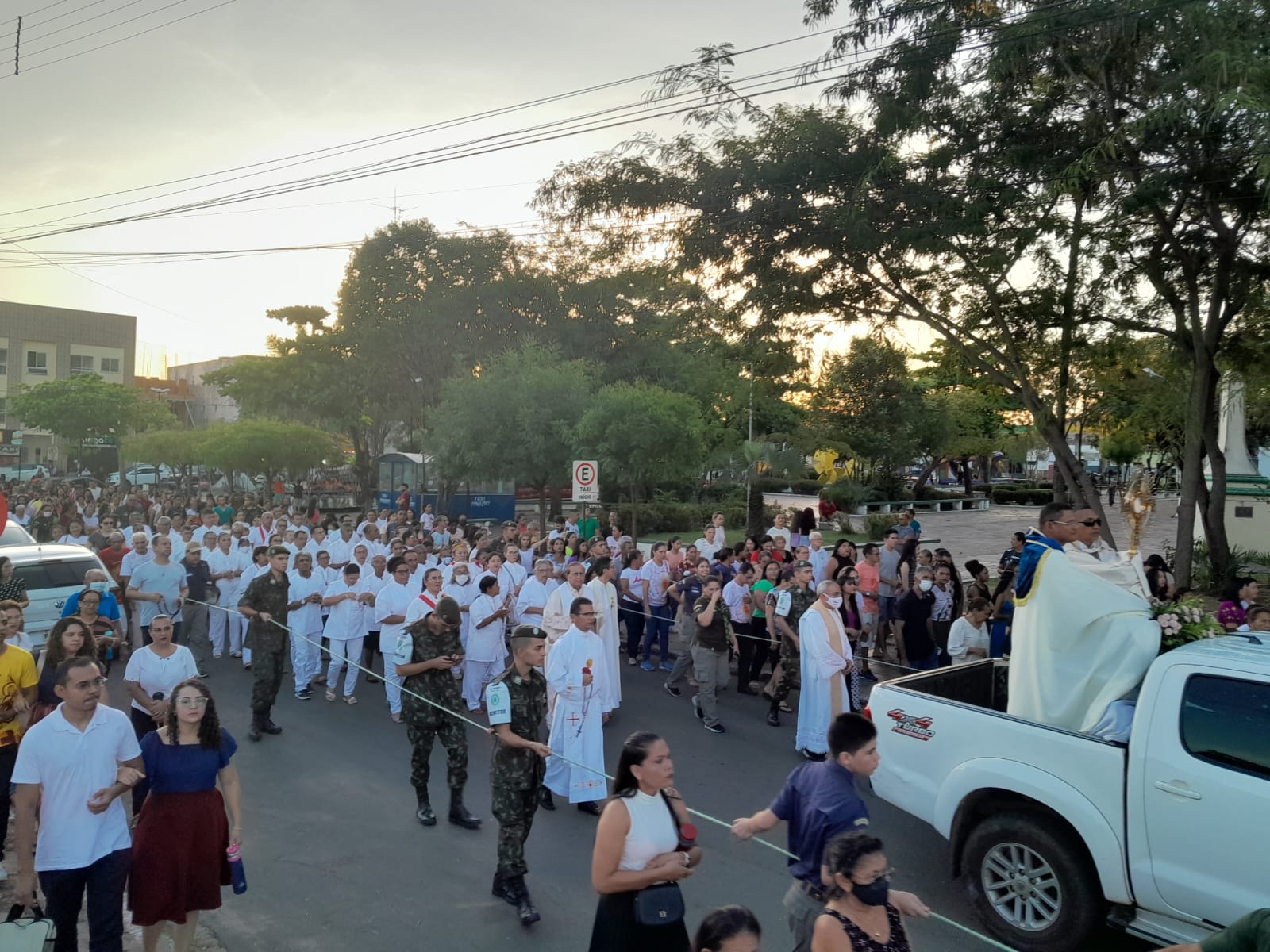A igreja Católica, realizou nesta quinta-feira (08), no Feriado de Corpus Christi. O trajeto saiu do adro da igreja Matriz de Nossa Senhora dos Remédios, no Centro, até à igreja Matriz do Sagrado Coração de Jesus, no bairro Prado, zona Sul da cidade.