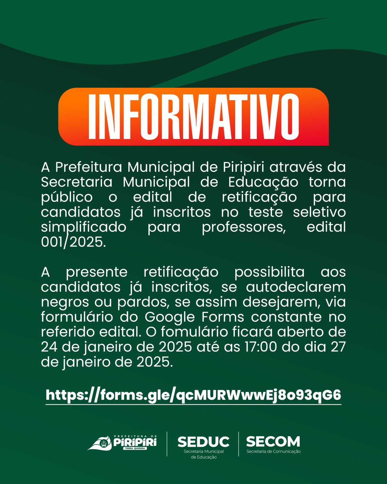 Informativo da Secretaria Municipal de Educação (SEDUC ) – Piripiri
