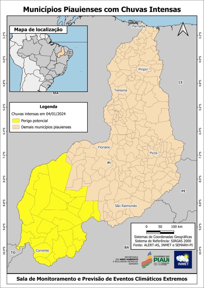 O Instituto Nacional de Meteorologia e Estatística (INMET) emitiu, nesta quinta-feira (4), um boletim meteorológico de situação crítica para 26 municípios da mesorregião sudeste do Piauí. O alerta amarelo remete a perigo potencial de chuvas intensas e estará ativo até esta sexta-feira (5).