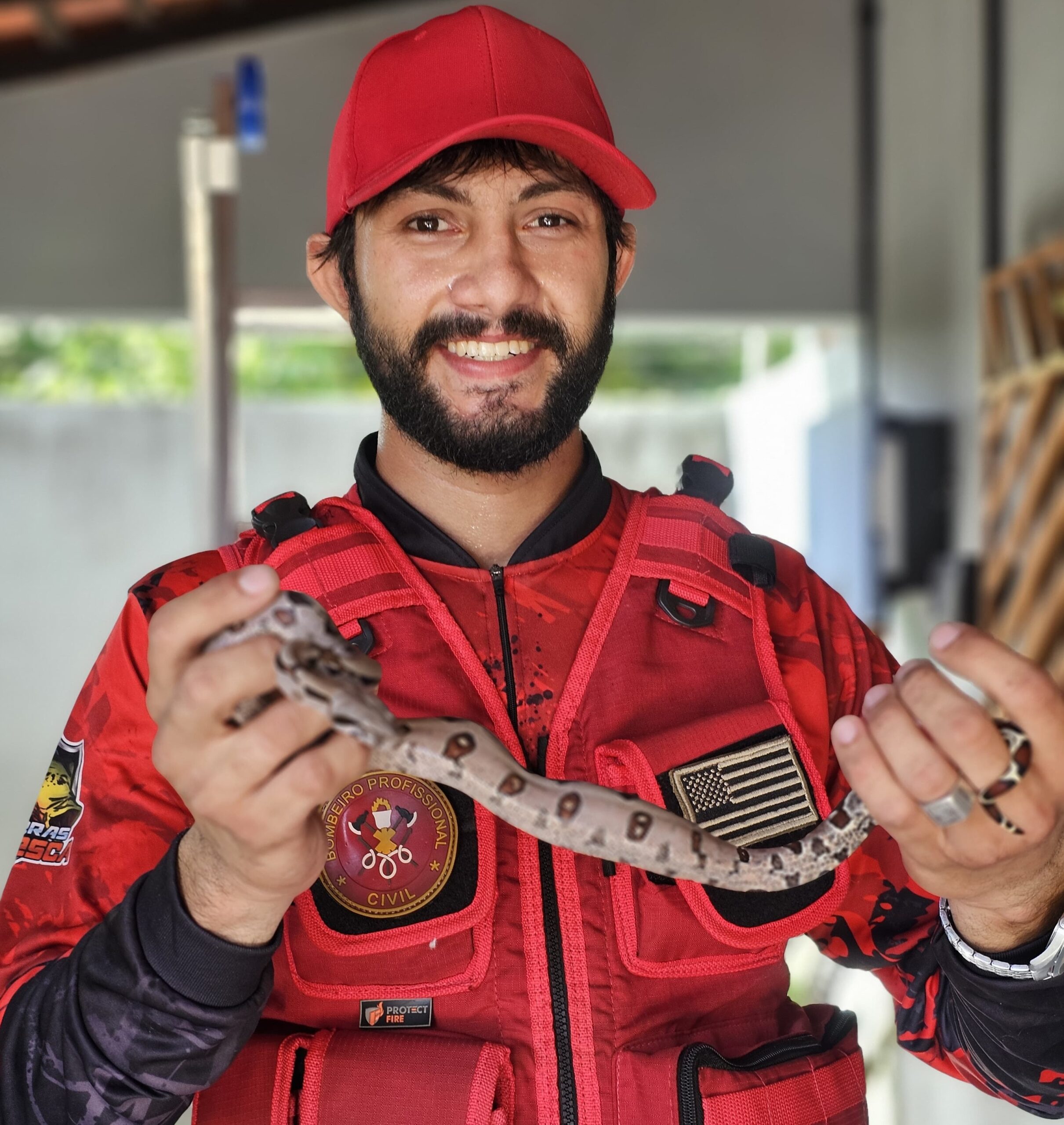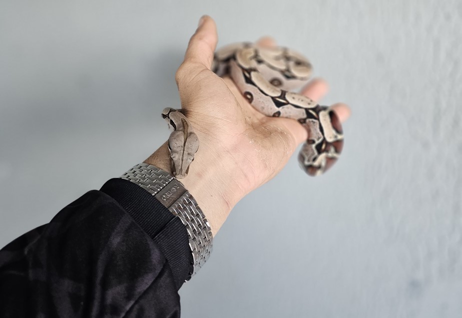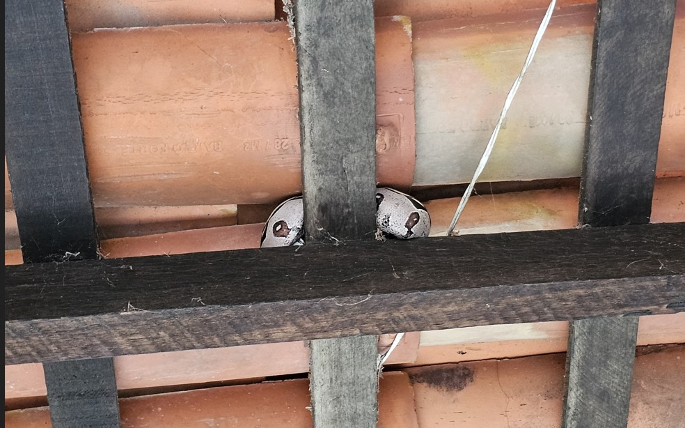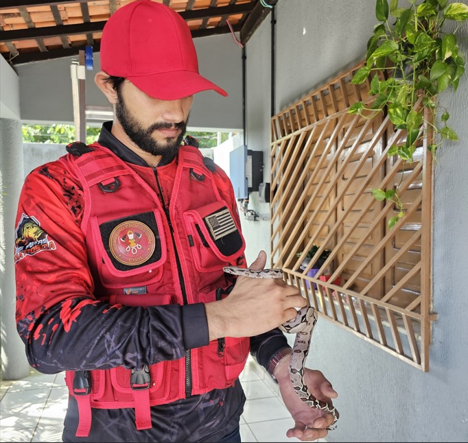A presença inusitada da jiboia assustou os moradores da casa, que acionaram o Bombeiro Civil David Brito, um especialista na captura deste tipo de animal, que com a ajuda da estudante de medicina veterinária Karine Brito, foram até a residência atender a ocorrência, onde a serpente estava alojada no telhado.