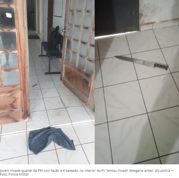 Jovem invade quartel da PM, ameaça policiais com facão e é baleado, em Barras