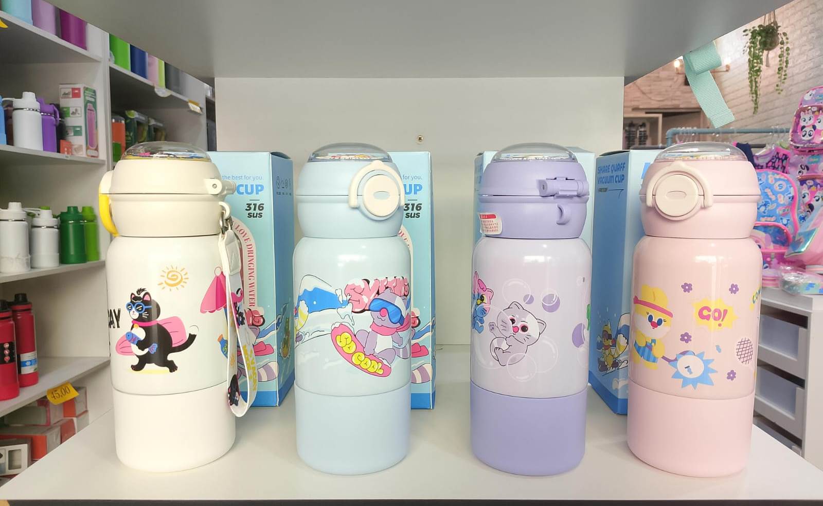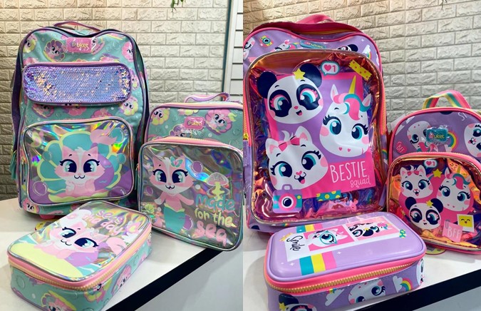 Temos diversos modelos em mochila, lancheira, estojo, garrafa térmica, temos para todos os gosto.