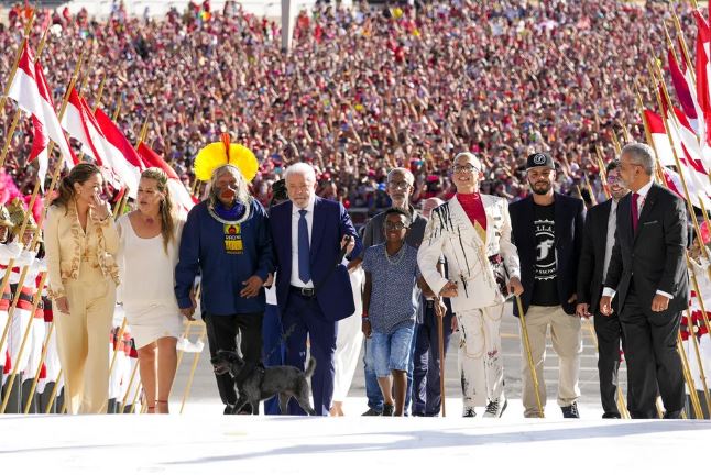 Luiz Inácio Lula da Silva tomou posse neste domingo (1º) como o 39º presidente da história do país. A celebração do início do mandato levou centenas de milhares de apoiadores à Esplanada dos Ministérios, em Brasília. Em um dos momentos mais marcantes, Lula recebeu a faixa presidencial de pessoas comuns, representantes do povo brasileiro.