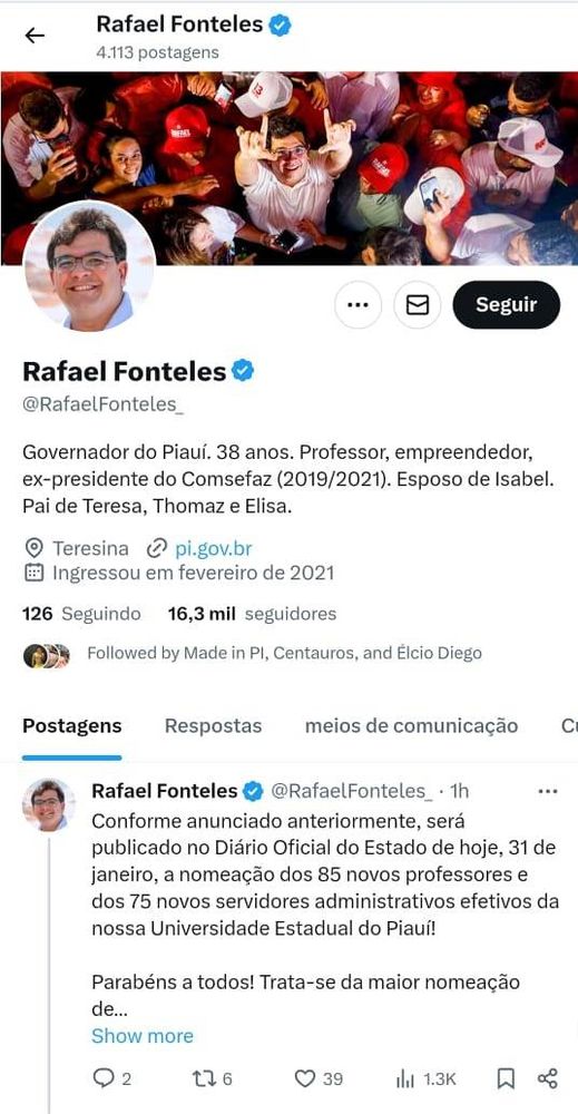 O governador Rafael Fonteles anunciou, em suas redes sociais, nesta quarta-feira (31), que a nomeação dos 85 novos professores e dos 75 novos servidores administrativos efetivos da Universidade Estadual do Piauí (Uespi) será publicada, ainda nesta quarta, no Diário Oficial do Estado. “A maior nomeação de servidores efetivos da história da Uespi”, destacou o gestor.
