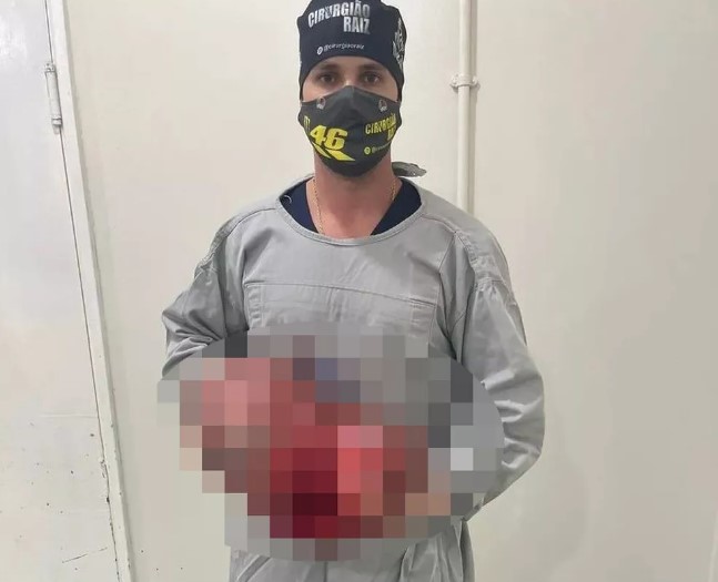 Submetida a cirurgia pelo Dr. Felipe Rocha (@cirurgiaoraiz) e sua equipe, foram removidas duas massas gigantes pesando quase 11 kg.