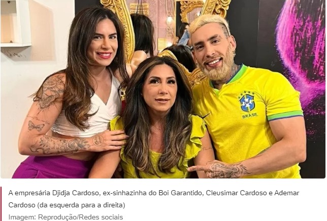 Cleusimar Cardoso e Ademar Cardoso, mãe e irmão de Djidja Cardoso, foram presos na quinta-feira (30), em Manaus. Segundo a Polícia Civil do Amazonas, os dois e Djidja Cardoso lideravam uma seita chamada “Pai, Mãe, Vida”, que praticava rituais que prometiam a cura espiritual e afirmavam que Ademar era uma espécie de reencarnação de Jesus na terra, Cleusimar assumia a figura de Maria, mãe de Jesus, e Djidja, a ex-sinhazinha, Maria Madalena.