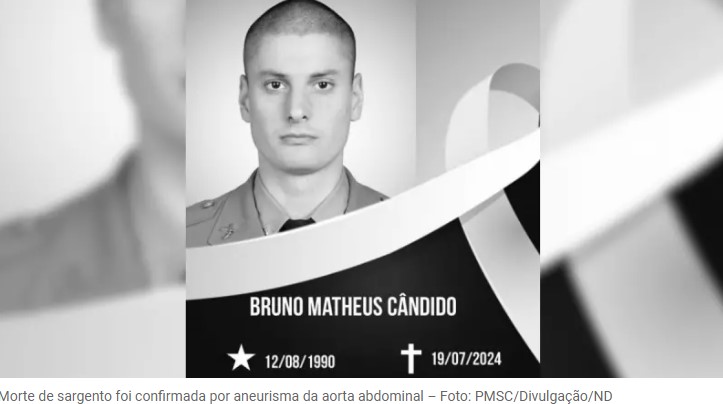 A Polícia Militar de Santa Catarina (PMSC) comunicou a morte do aluno sargento Bruno Matheus Candido, de 33 anos, por meio das redes sociais. Lotado no 36° BPM em Dionísio Cerqueira, no Oeste catarinense, o policial morreu durante a madrugada do sábado (20), em Chapecó.