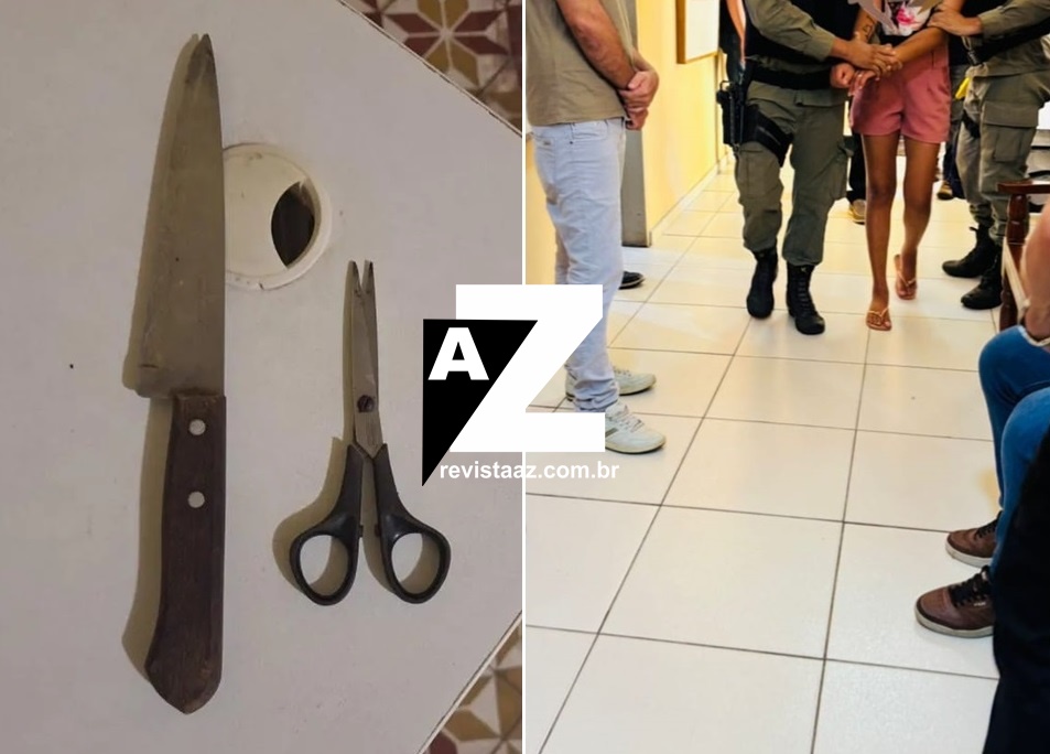 De acordo com a PM, a guarnição foi acionada por funcionários da secretaria e por populares quando passava pela região. Ao chegar ao local, os policiais encontraram a suspeita portando uma faca e uma tesoura. A mulher foi descrita como muito agressiva durante a abordagem.