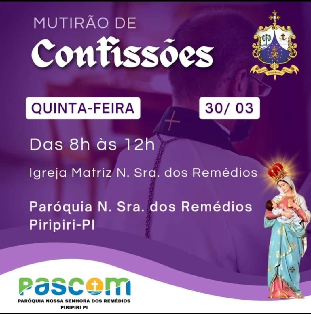 Mutirão de Confissões na Igreja Matriz N. Sra. dos Remédios de Piripiri; participe!