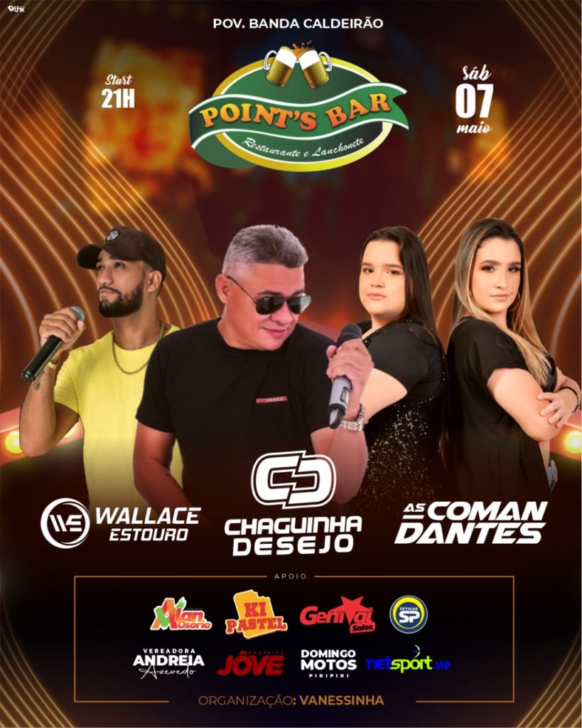 Neste sábado (07) tem Chaguinha Desejo, as Comandantes e Wallace Estouro no Point´s Bar na Banda-Caldeirão