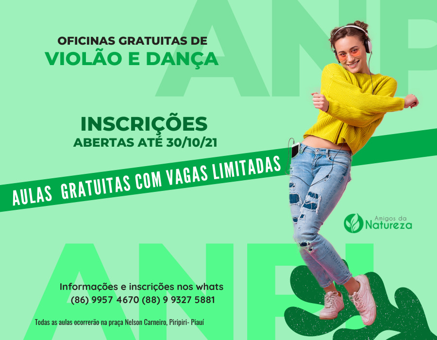 Estão abertas desde a última segunda-feira (20/09), até o dia 30 de outubro as inscrições para as oficinas de violão e dança da Associação Ambiental e Cultural Amigos da Natureza de Piripiri , ANPI.