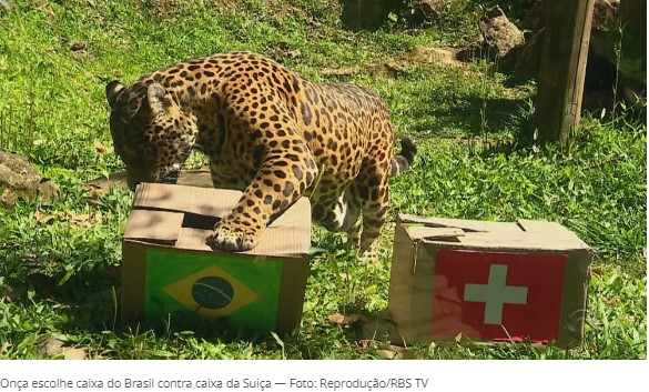 A equipe do Zoo de Gramado resolveu testar as onças para palpitar nos dois próximos jogos do Brasil, contra a Suíça, na segunda-feira (28) e contra Camarões, na sexta (2).