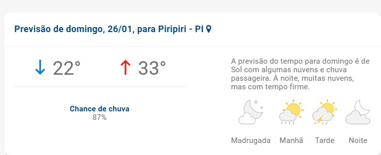 Confira a previsão para Piripiri neste final de semana: