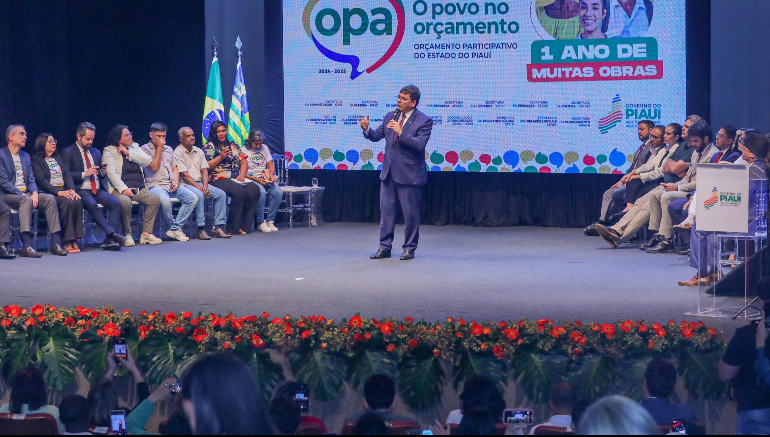 O governador Rafael Fonteles participou, nesta terça-feira (4), do evento de comemoração do primeiro ano do Orçamento Participativo (OPA) e da divulgação dos resultados da primeira fase do OPA 2024/2025. Fonteles garantiu que, até 2026, o povo vai decidir onde serão aplicados os recursos na ordem de R$100 milhões.