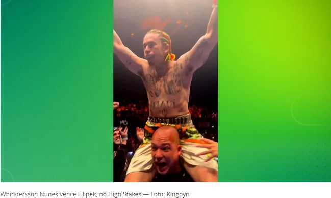 O humorista e agora lutador Whindersson Nunes foi o vencedor do confronto contra o Filipek, no High Stakes, torneio internacional de boxe que reúne influenciadores e amantes da modalidade. A luta entre o brasileiro e o polonês foi realizada na Ovo Arena Wembley, em Londres, na Inglaterra. Essa foi a estreia de Whindersson Nunes em uma competição na modalidade. O brasileiro conseguiu a vitória no segundo round após três quedas do rival polonês.
