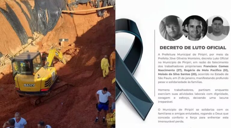 A prefeitura de Piripiri decretou luto oficial pelas mortes de três trabalhadores naturais do município em uma obra no estado de São Paulo, nesta quinta-feira (22). A família de uma das vítimas confirmou ao g1 que os corpos devem chegar ao Piauí ainda nesta sexta (23).