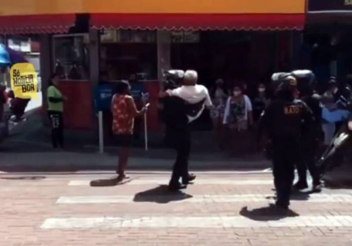 O nome do PM que carregou o idoso nos braços até um local seguro não foi divulgado.