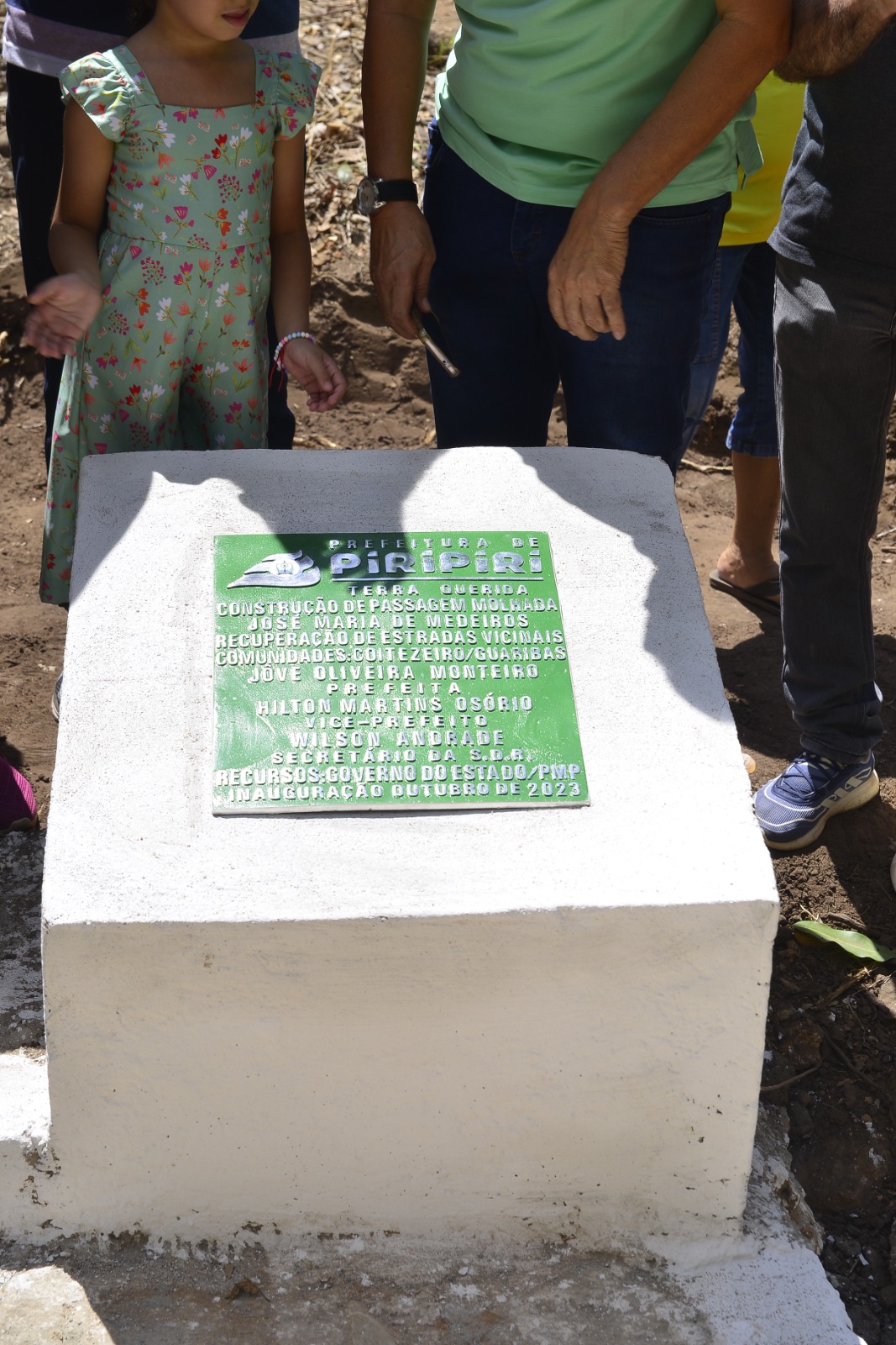 A prefeita de Piripiri, Jôve Oliveira Monteiro, e comitiva estiveram no último sábado (07), na região da localidade Coitezeiro, zona rural do município, para inauguração de estradas, calçamento de ladeiras e passagem molhada no Riacho da Coletina. A obra é de responsabilidade da Prefeitura de Piripiri, por meio da Secretaria de Desenvolvimento Rural (SDR). A passagem molhada homenageou o morador José Maria de Medeiros.