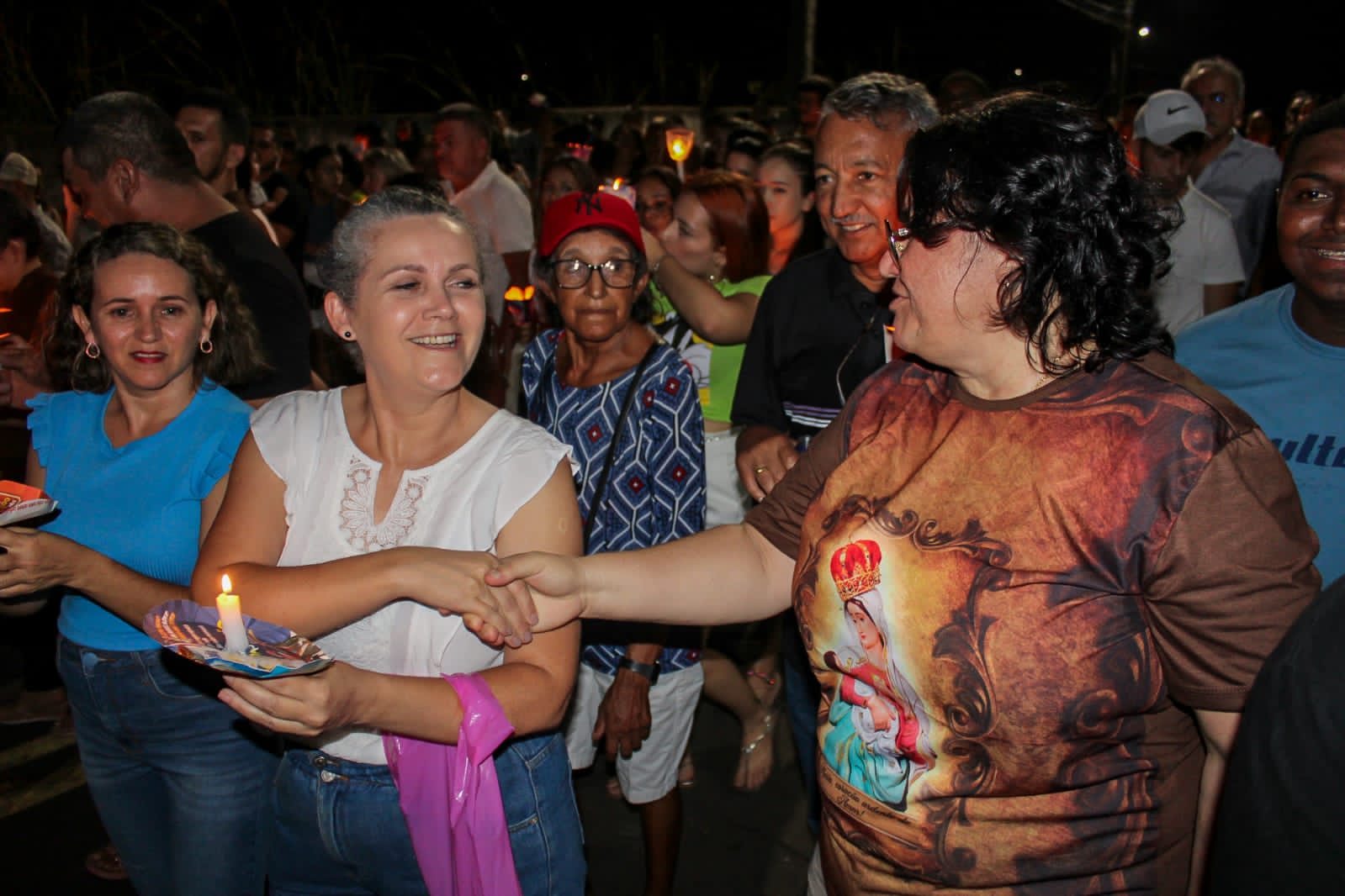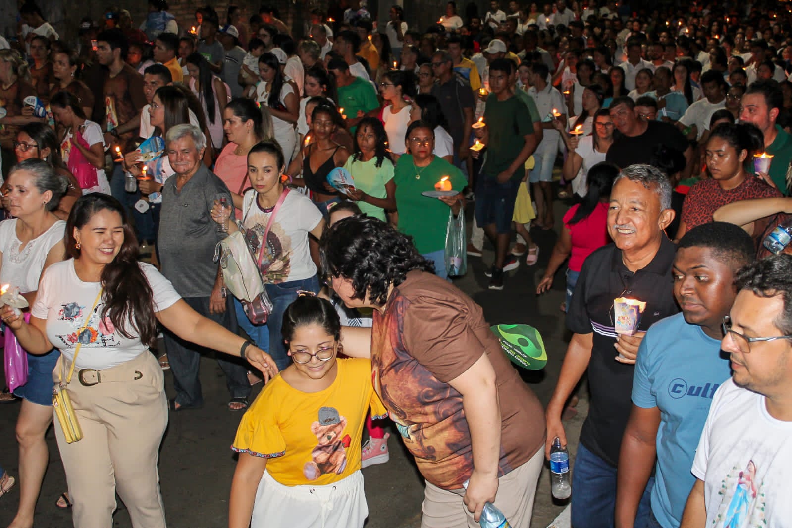 Jôve Oliveira estava acompanhada por amigos e familiares que acompanharam a tradicional procissão que iniciou no adro da Igreja Matriz, passou por ruas e avenidas, voltando ao local de saída para a celebração final.