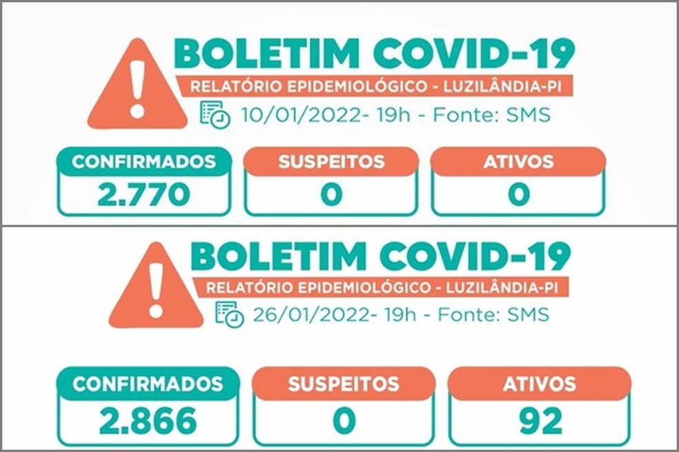 Em 16 dias, o município de Luzilândia saiu de 0 casos ativos, no dia 10 de janeiro deste ano, para 92 casos ativos, conforme o último boletim divulgado no dia 26 de janeiro.