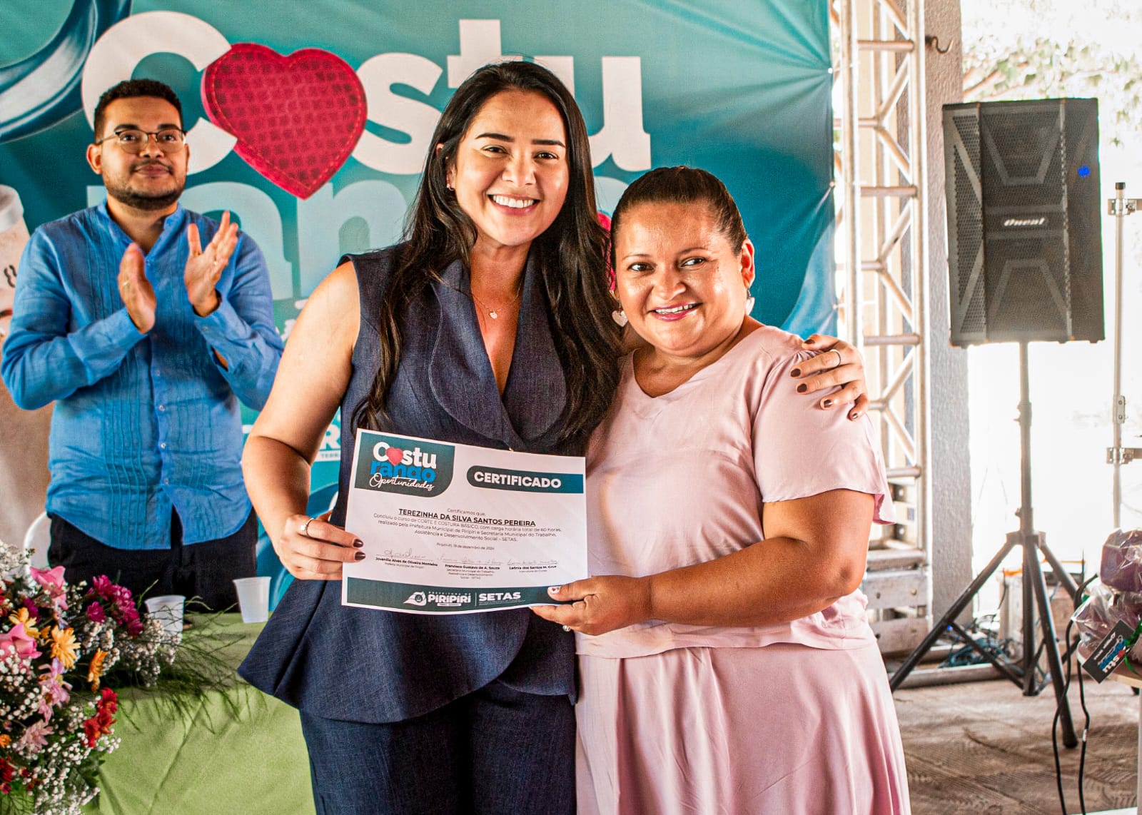 “Conectar e Costurando Oportunidades são dois projetos maravilhosos. O primeiro reúne jovens e idosos para aprenderem a usar o computador e o celular, ajudando os idosos que não sabiam e hoje sabem utilizar essas tecnologias. Já o Costurando Oportunidades me emocionou. As participantes estão aprendendo a costurar e podem até se inserir no mercado de trabalho, tendo uma renda extra, o que vai contribuir financeiramente para suas famílias”, afirmou a prefeita Jôve Oliveira Monteiro.