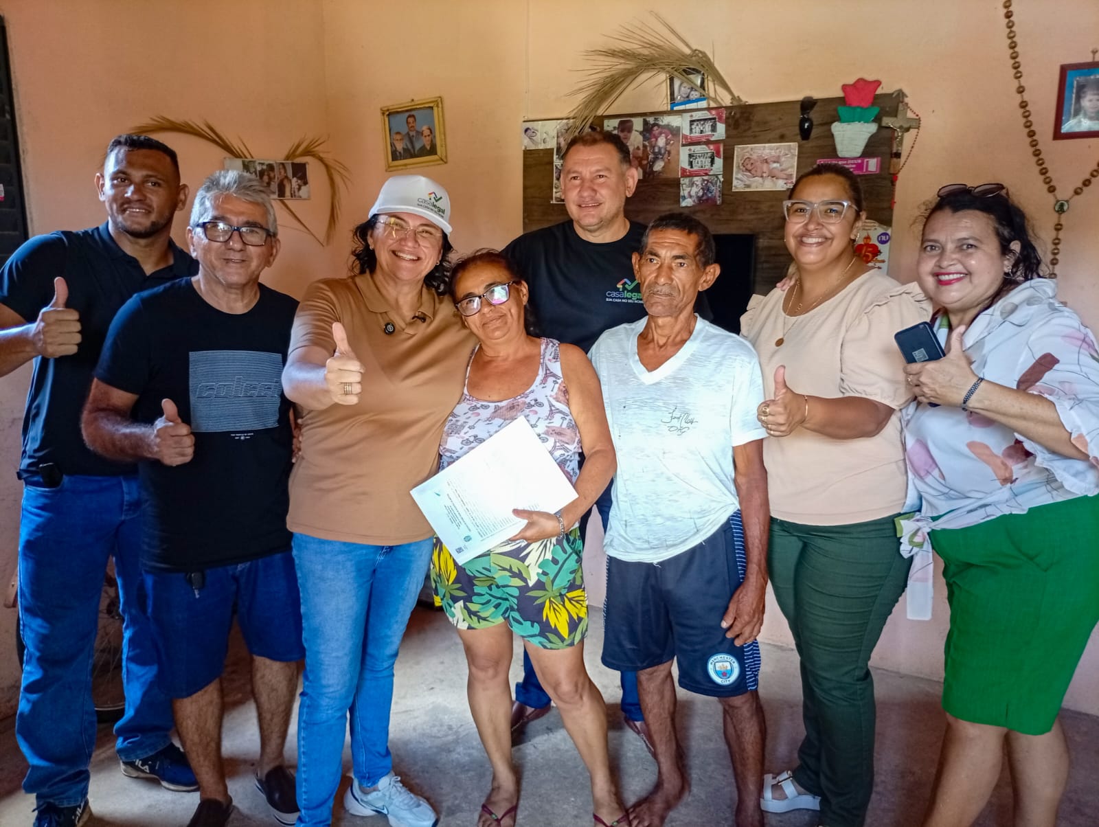 A moradora Raimunda Pereira destacou a importância da ação: “Ela veio em minha casa, a prefeita, isso é muito bom. Surpresa ótima e com o registro de minha casa.”