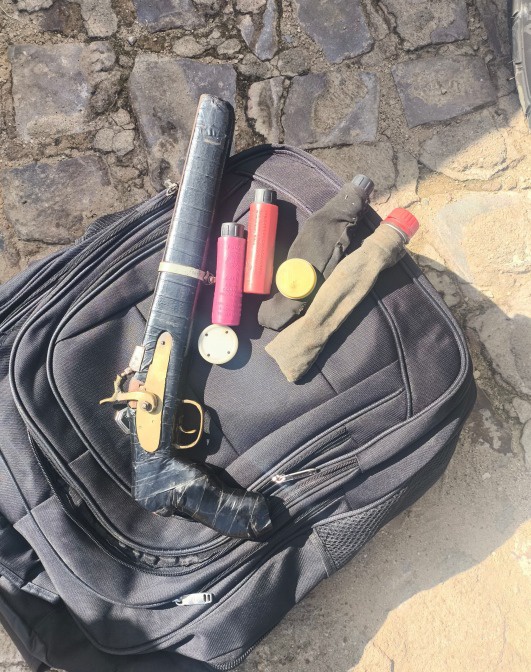 Na mochila do passageiro, foram encontrados materiais utilizados para recarga de munição, incluindo pólvora, espoletas e chumbo. Em continuidade à fiscalização, a equipe localizou uma arma de fogo artesanal escondida sob a poltrona ocupada por ele.