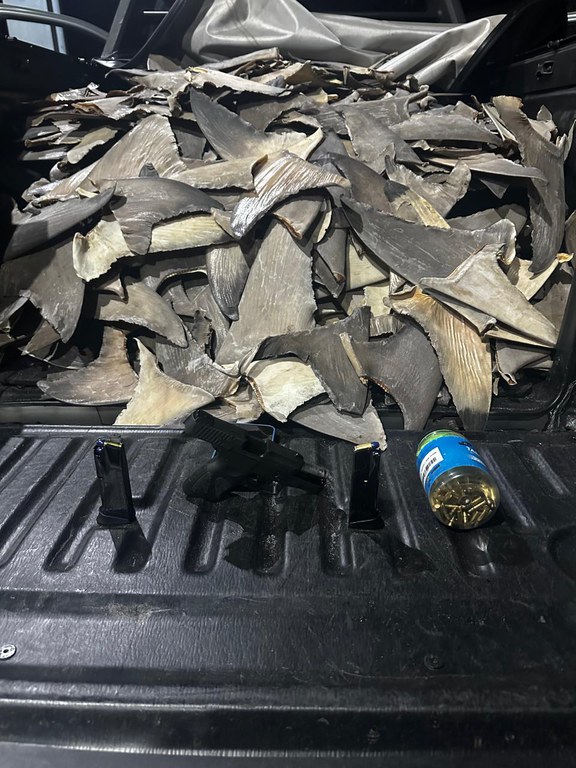 A Polícia Rodoviária Federal (PRF) apreendeu, na quinta-feira (09), aproximadamente 260 kg de barbatanas de tubarão. O material foi encontrado pelos policiais em uma abordagem na BR-316, em Valença. No interior do veículo, também havia uma pistola calibre 9mm, dois carregadores e 186 munições.