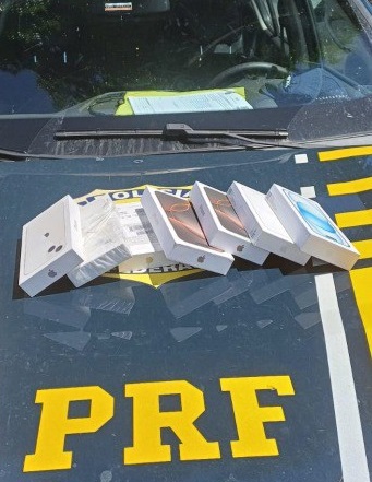 Os produtos incluíam modelos iPhone 13, iPhone 15 e os recém-lançados iPhone 16, 16 Pro e 16 Pro Max, totalizando um valor elevado. O condutor informou ter adquirido os eletrônicos em São Paulo, sem apresentar qualquer documento fiscal que comprovasse a origem legal da mercadoria.