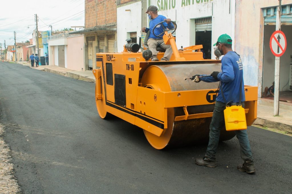 A prefeita Jôve Oliveira Monteiro destaca que, de forma inédita, a gestão municipal está recuperando a malha viária com duas empresas trabalhando, simultaneamente, na pavimentação da cidade, sendo PAC Engenharia, na avenida principal do Residencial Petecas I, II e II, e a empresa Trator Center, no Centro da cidade.