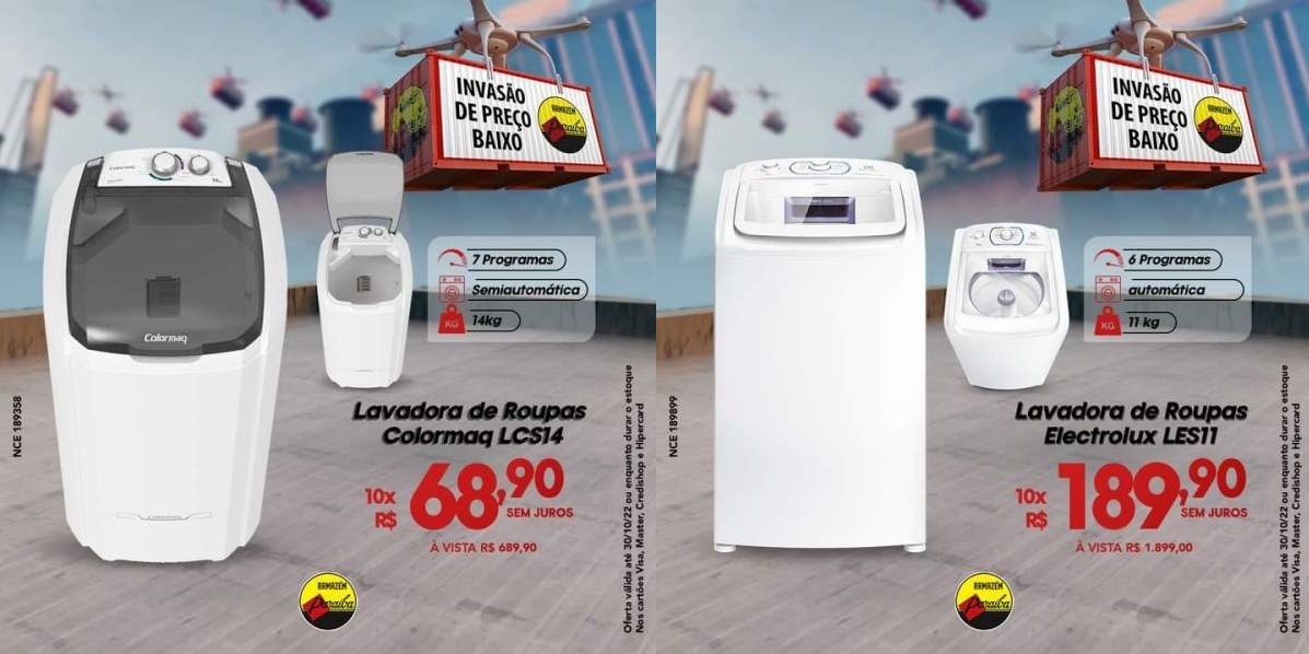 A invasão de preços baixos continua. Agora no setor de lavadoras. E com aquele parcelamento especial que só o Paraíba tem.