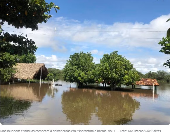 Rios inundam e famílias começam a deixar casas em Esperantina e Barras, no PI — Foto: Divulgação/Defesa Civil de Esperantina